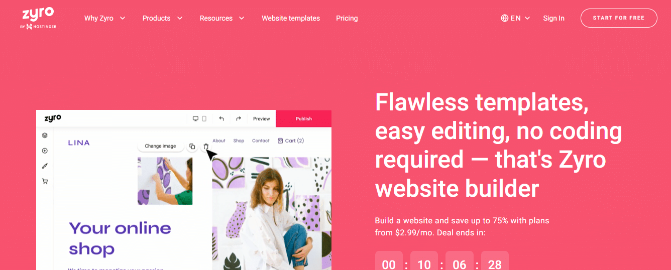 Zyro is another Shopify alternative you should seriously consider if you want to get into dropshipping but on a shoestring budget.