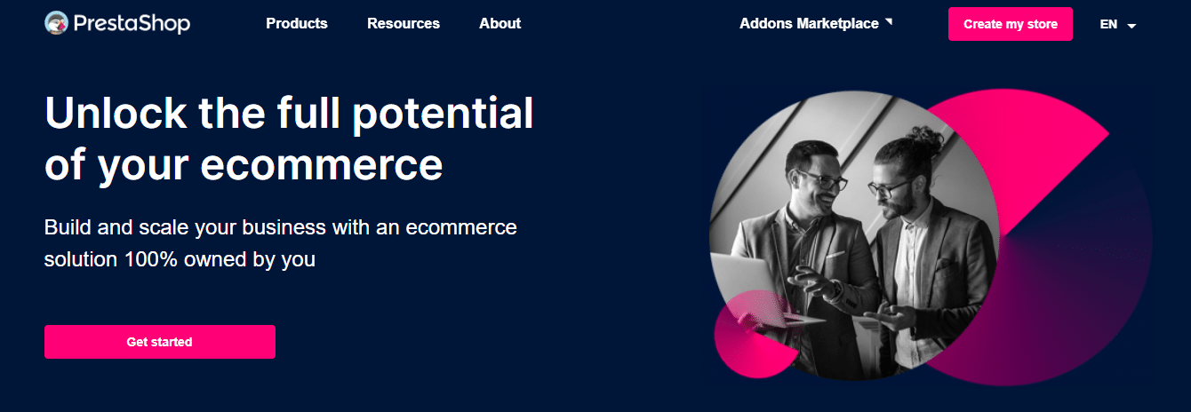 Prestashop is a CMS that enables you to design, build and set up an eCommerce website without writing any code.