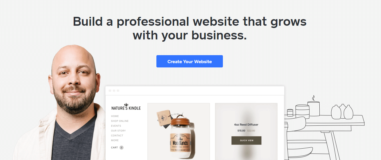 You can start for free on Wix, although your options are limited on the free plan. Plus, Wix has one of the easiest drag-and-drop design editors.