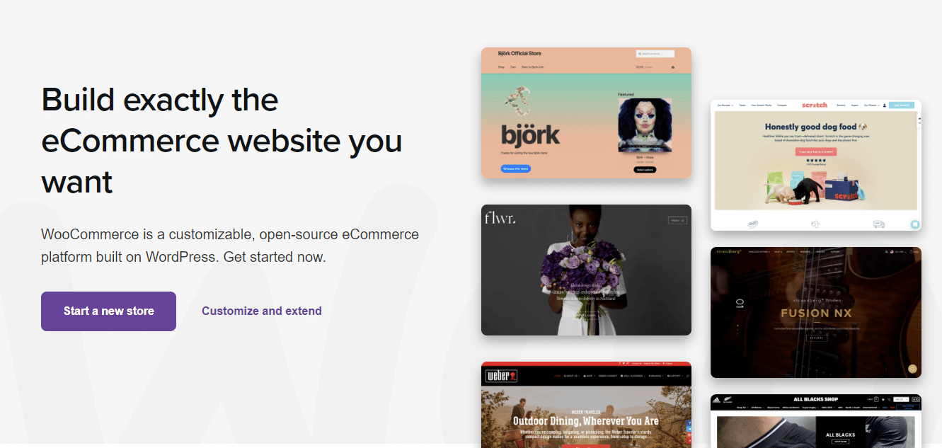 WooCommerce is an eCommerce solution for WordPress that makes it easy to set up a fully functional store online – and for free. This means you must have a WordPress website to use this eCommerce solution.