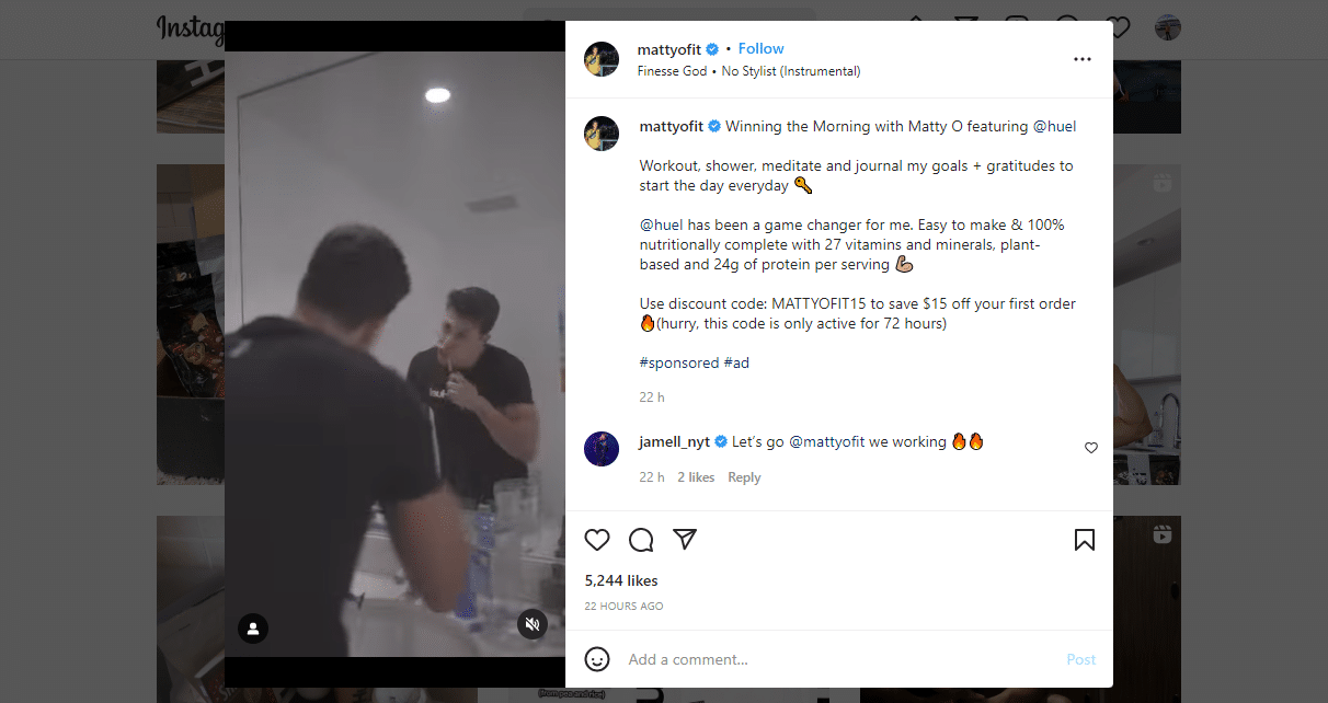 Recently, Huel collaborated with Mattyofit to create a sponsored post. In the post, Matt shared his workout routine and explained how Huel has always been part of it.