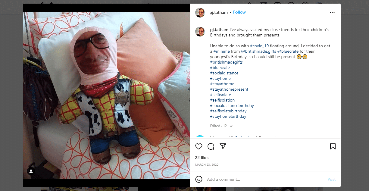 Bluecrate, a hugely popular print-on-demand brand that produces personalized personal gifts, is a testament to this. The brand has leveraged shoutouts and tags to grow its Instagram audience, as shown in the screenshot above.