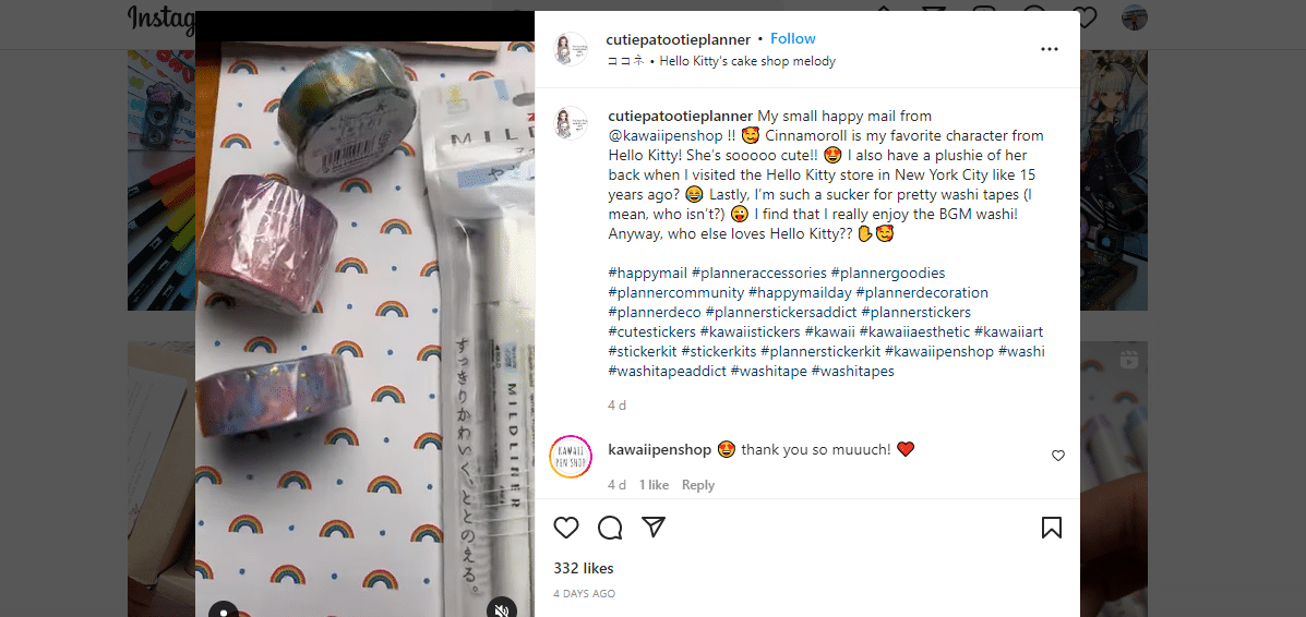The cool part is that this shout-out post cost Kawaii pen $0 in ad but was able to pull in 332 likes. That’s a feat!