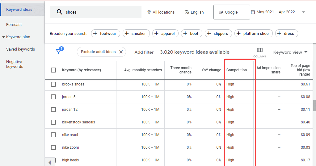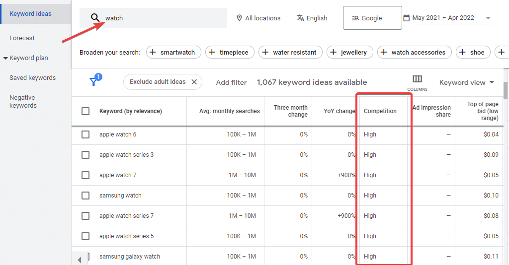 As proof, if you open Google Keyword Planner and input “watch” as a keyword, you will see this: