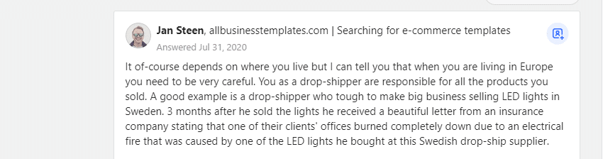 The other day on Quora, someone narrated how a dropshipper he knew got into trouble by dropshipping LED lights to a customer. The LED lights were of low quality, and so burned the office of a customer that bought them.