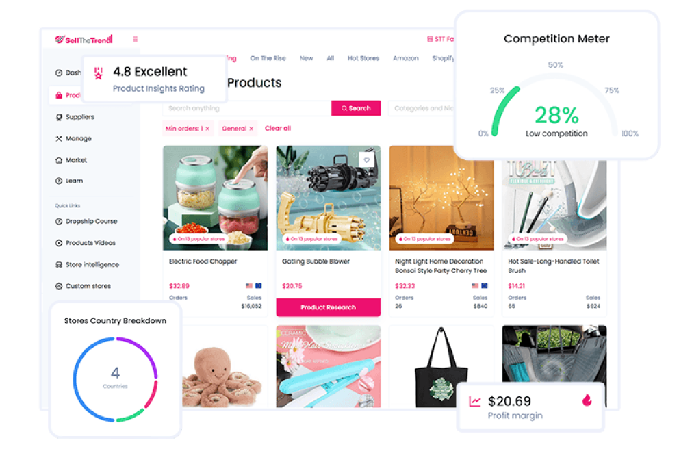 Everything you need to create and run a successful dropshipping business simply, affordably, and profitably— from creating your store to listing and shipping products, Sell The Trend has you covered
