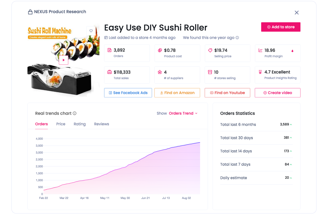 Our AI-powered NEXUS research and analytics platform helps you select the right ones — high interest, low competition, and poised to sell big.