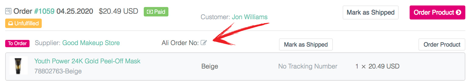 Updating Aliexpress Order ID Manually