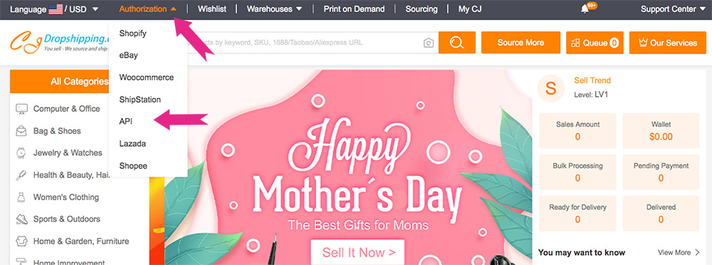 Sign in to your CJDropshipping account or if you do not already have an account, you can Sign Up Here for Free.