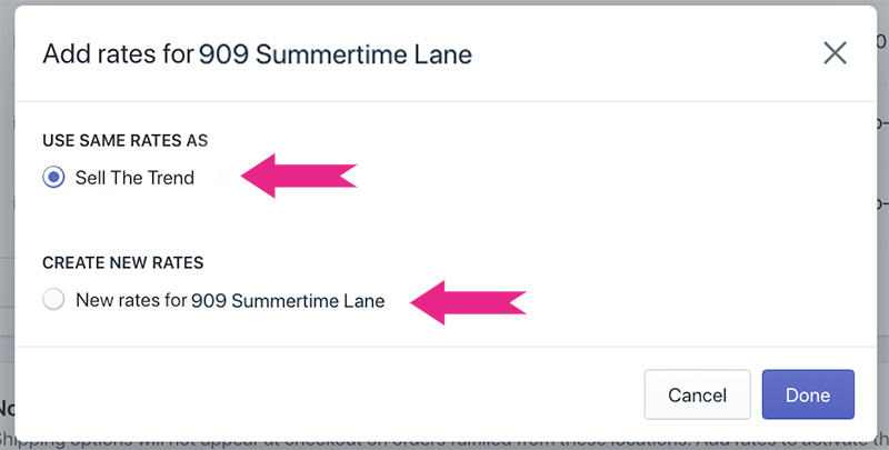 4. Review the information on the window that pops up. Either select "Use same rates as" a working set of rates, or click to create new rates if no good rates have already been setup. then click the Done button.