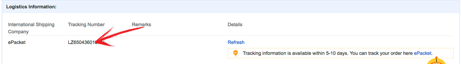 3. grab the tracking number in the Logistics Section