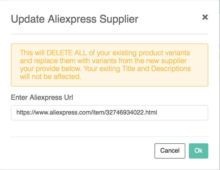 If a supplier is no longer selling a particular product, you can use the Update Fulfillment supplier function to switch suppliers and continue selling the product. Sometimes a supplier has simply changed the options they offer and you want to "refresh" the current options offered. This feature can also be used in the event you did not import a product using "include variations" and you want to start selling the product will all available options. Follow the steps below to switch or update supplier info.