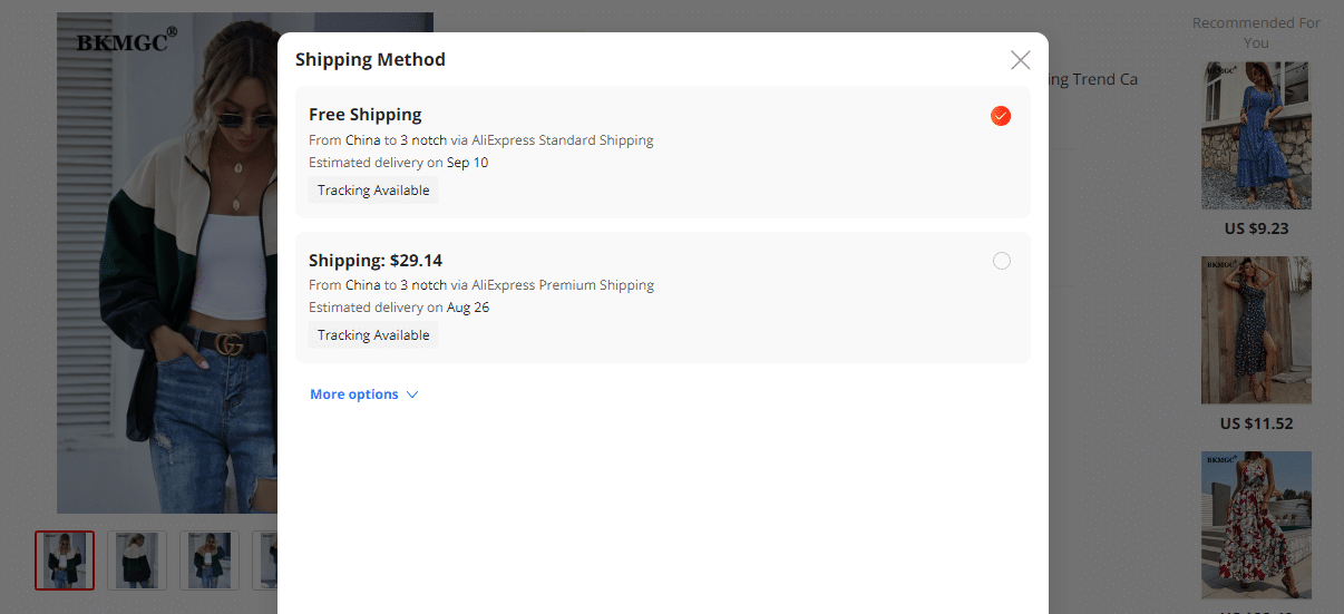 Case in point: You can ship a piece of women’s jacket to the US for free via Standard shipping. Whereas shipping the same jacket via Premium shipping will cost you as much as $29.14.
