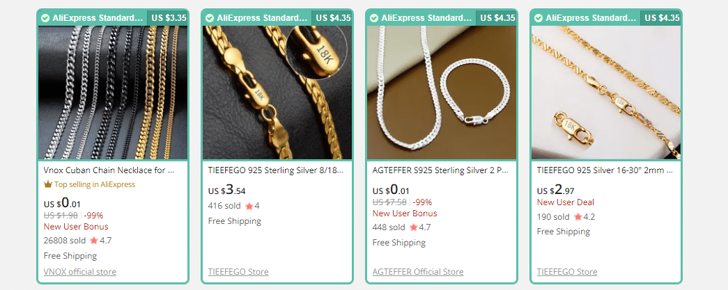Notwithstanding, chain necklaces are not that expensive. As proof, you can buy good chain necklace products on Aliexpress for as low as $1.