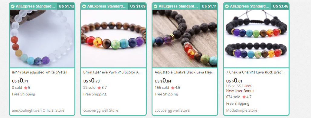 On Aliexpress, for example, 7 Chakra Bracelets cost about $0.01.