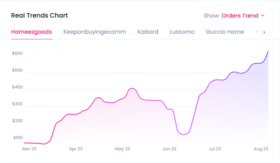 The A.I. powered product discovery algorithm that lets you simply enter a store URL (or choose a popular store from our list) and instantly receive detailed data about traffic, products, pricing, orders, revenue, and more.
