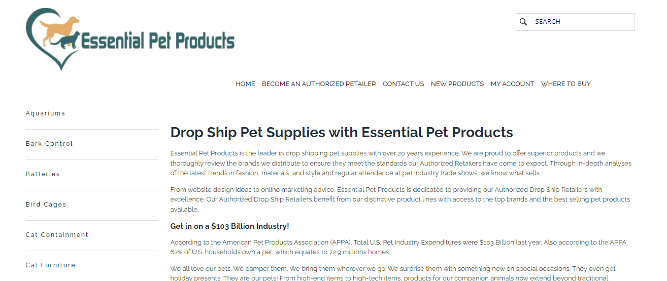 Essential Pet Products is one of the biggest suppliers of pet products in the US. The company has been in operation for over 20 years.
