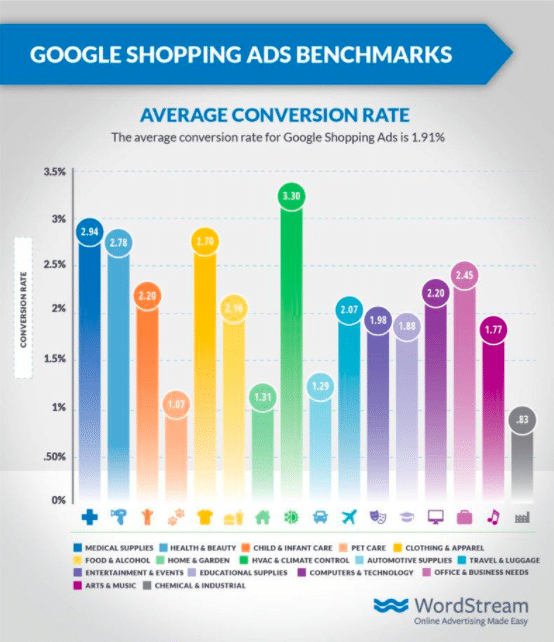The infographic below shows the average conversion rates for Google Shopping ads by niche: