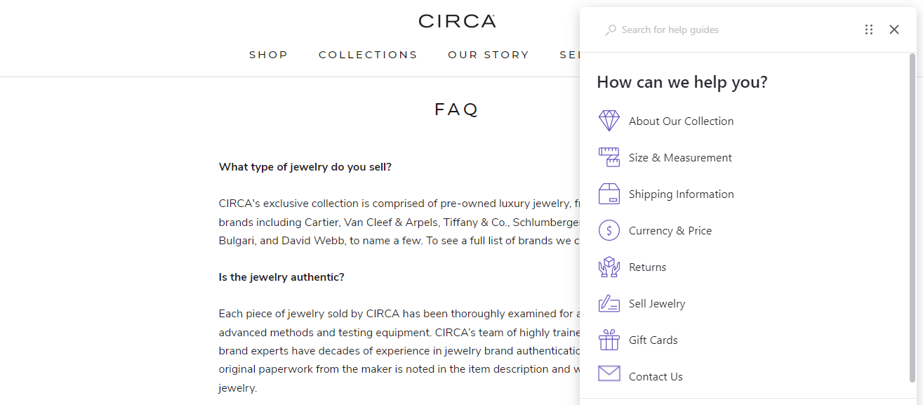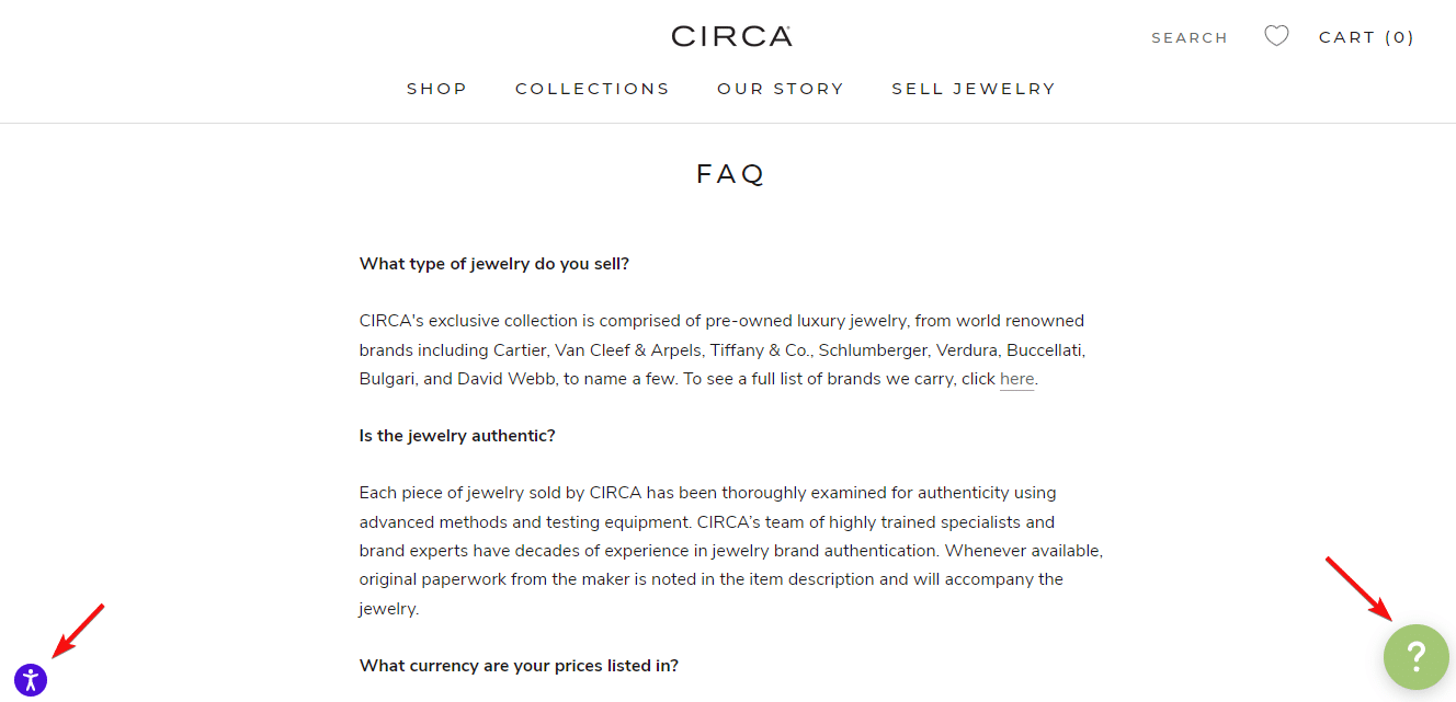 Circa’s FAQ page has two hard-not-to-notice features that we really like. One is the help button with a large “?” at the bottom-right corner of the page.