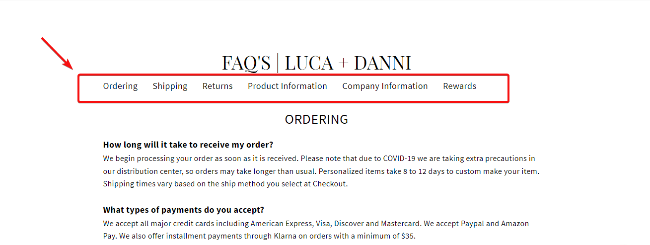 Did you notice the navigation menu on the FAQ page? This makes it easier for shoppers to find answers quickly.