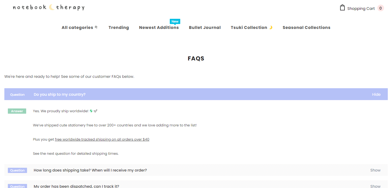 A great FAQ (Frequently Asked Questions) page is a must-have if you want to build trust and credibility with your customers and smoothen their buying experience.