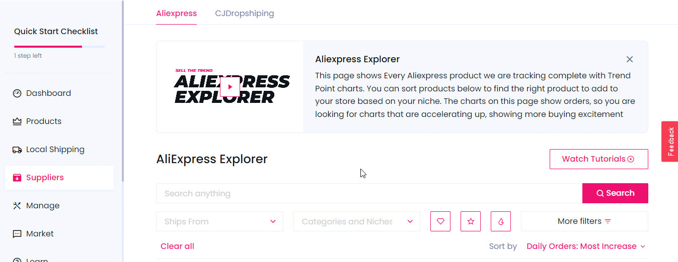 One easy way to find potential suppliers for bling dropshipping is by using Sell the Trend’s supplier finder feature. This feature allows you to find suppliers on Aliexpress and CJDropshipping easily.