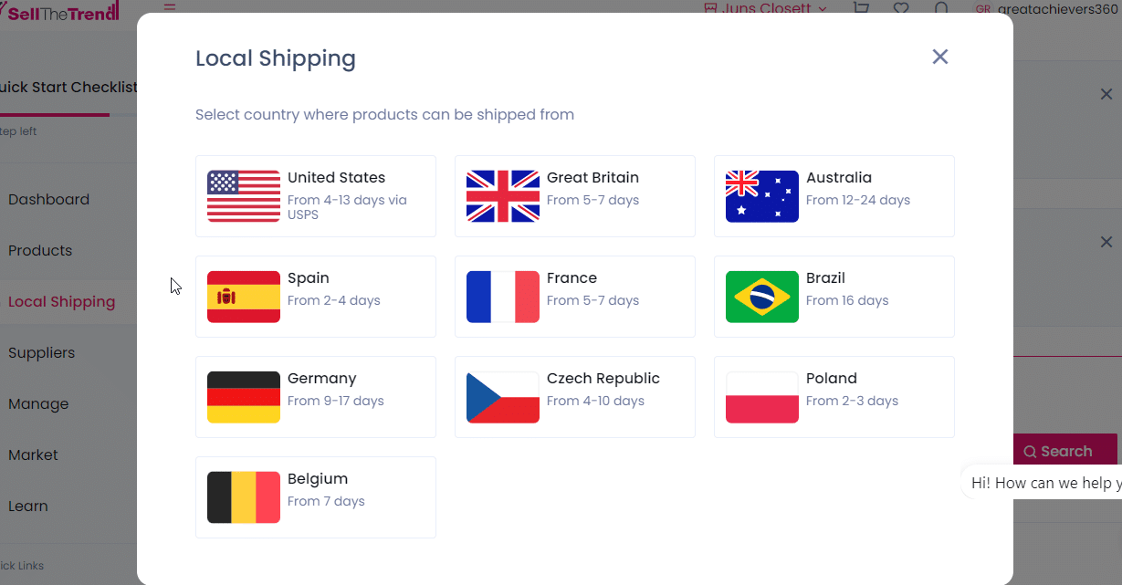 While there are several ways to find such suppliers, you are better off using the Sell the Trend’s Local Shipping feature. This feature allows you to find suppliers in specific countries.